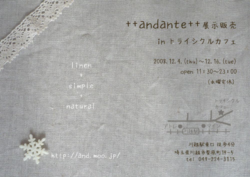 ++andante++ 展示販売 in トライシクルカフェ