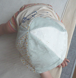 帽子には小花やレース生地を使って女の子用に作ったはずなんだけど