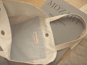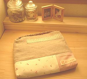裏地にピンク系の生地を使い、やはりスタンプでポイント。
