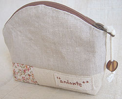 刺繍のポイントを入れました。 裏面には、++andante++のロゴタグ。