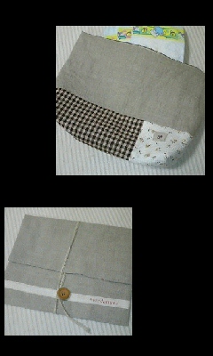 写真、携帯からなので変ですが作品の一部。オムツ入れと、ベビー着替え入れです。