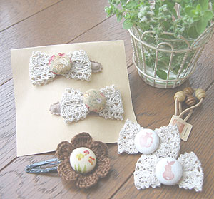 これまた、手作りのレースをあしらった可愛いピンです。