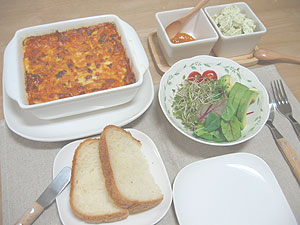 ラザニア グリーンサラダ パン