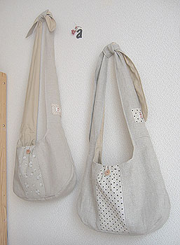 紐の縛る位置を変えれば、斜めがけも可能です。