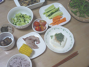 ・冷や奴(薬味の大葉はお向かいのお庭からいただいた物)