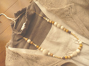 ウッドビーズのネックレスとブレスレットは、